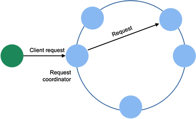 Cassandra spreads rows of tables across the cluster via a distributed hash table (DHT). The DHT is essentially the same design as the one used in Amazon Dynamo, which in turn is based on the Chord DHT. Systems are arranged in a logical ring and each node is responsible for a range of values. The coordinator applies a consistent hash function the partition key to generate a token. The request is then forwarded to the node whose range of hash values includes that token.
