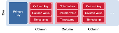 For example a user might have multiple phone numbers that, instead of being stored in a separate table with foreign keys that identify the owner of each number, are co-located with the user's information. Each number is a new column (e.g., phone-1, phone-2, ...). There's also no limit to the number of columns in a row. As we saw with Bigtable, columns might be a list of URLs. In the Bigtable example, a URL of a web page serves as a row key but column names within the URL have names of URLs that contain links to that page and the value of each of those columns contains the link text that appears within the page. We can also consider a related example where a row key identifies a user and each column name is a URL that the user visited and its value is the time of the visit. This is a powerful departure from conventional database fields because the column name itself may be treated as a form of value: by iterating over the columns, one can obtain a list of URLs and then look up their associated value (e.g., link text or time of visit).