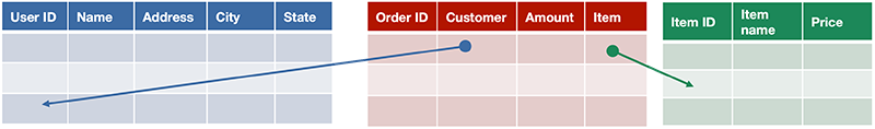 Cassandra is an example of a NoSQL database. SQL stands for Structured Query Language and is the de facto standard language for interacting with relational databases. Relational databases are characterized by supporting multiple tables where each table has a set of fields that are defined when that table is created. Each row of the table is identified by a unique key and the database implements indexing structures that enable rapid lookup of the row by the key. Some fields in a row may contain reference to keys that belong to other tables. These "relations" are called foreign keys. For instance, a table of product orders may be indexed by an order ID (the key). Each row might contain a foreign key that refers to the user that placed the order in a customers table as well a foreign key for the item description in an Items table.