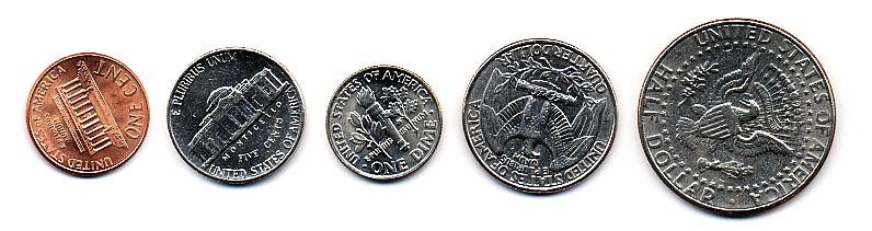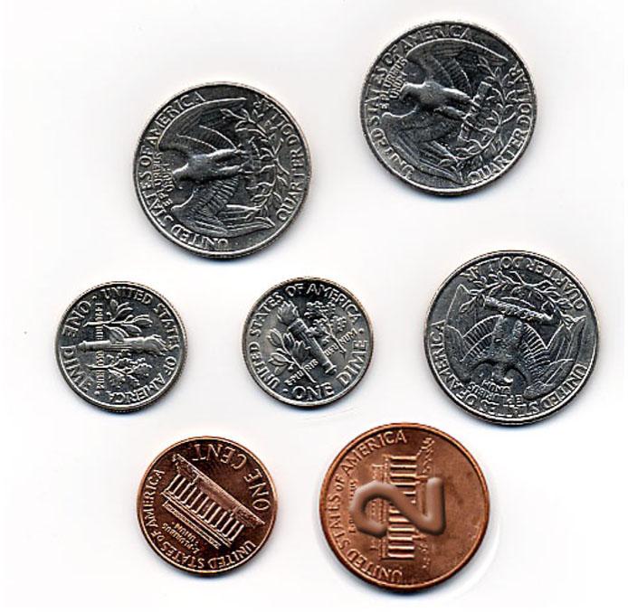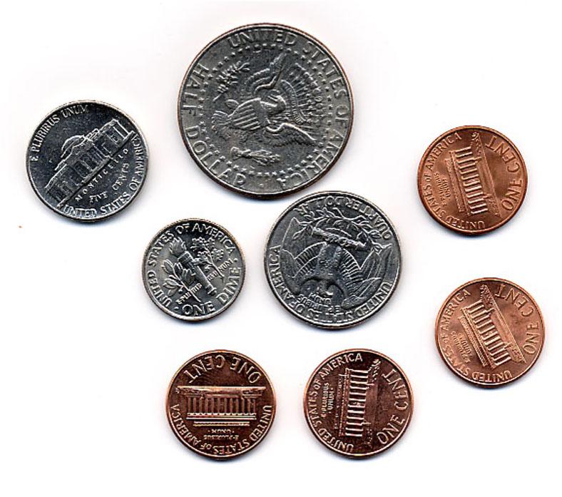The U.S. has five basic coin denominations: 1, 5, 10, 25, and 50 cents. With these, the worst-case payment is eight coins. For example, 94¢ or 99¢ requires eight coins.